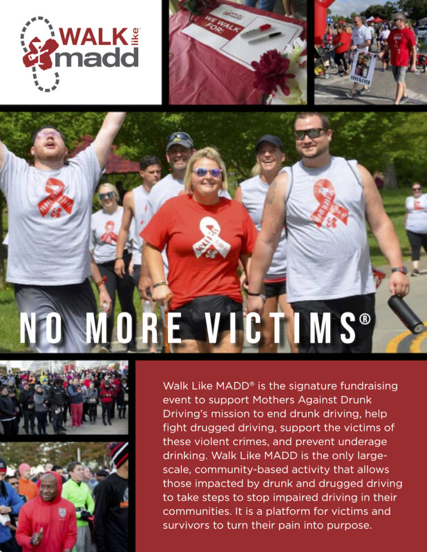 The Walk Like MADD event is open to everyone who wants to participate and make a difference in the community. The fundraiser offers an excellent opportunity for families and friends to unite and make a positive impact. Participants will walk or run a 5-K course to remember victims, support survivors, and inspire even more people to commit to ending this 100% preventable crime.