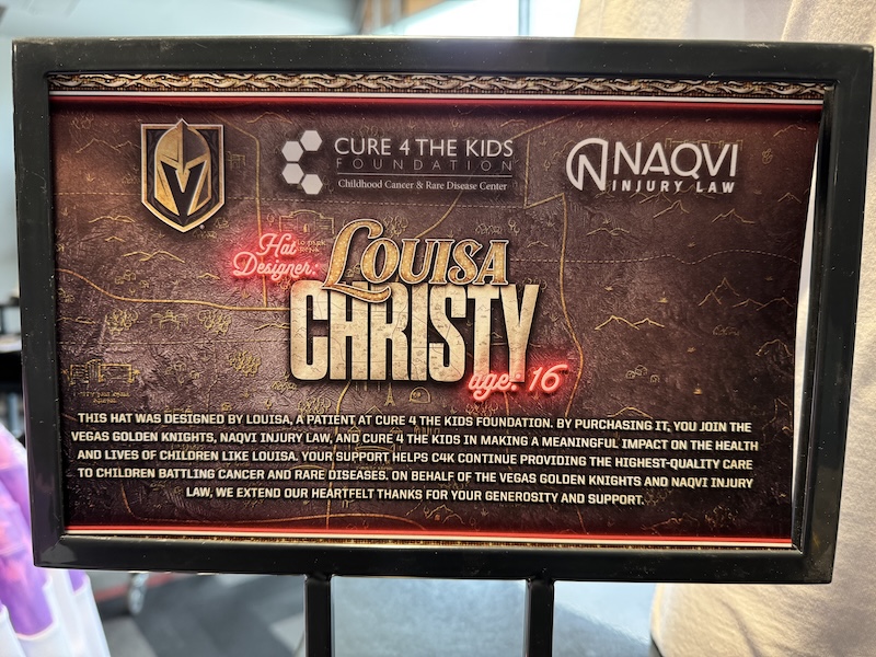 “Our kiddos loved the opportunity to be creative and to possibly see their designs on a VGK hat made in recognition of the Hockey Fights Cancer Campaign,” said Annette Logan-Parker, C4K Founder and Chief Advocacy and Innovation Officer. “We are incredibly grateful for the strong support of the Vegas Golden Knights and Naqvi Injury Law and their combined efforts that include our patients in once-in-a-lifetime experiences.”